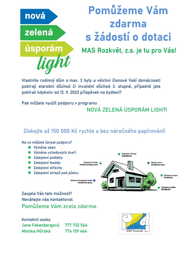 Pro vlastníky rodinného domu, v němž všichni členové pobírají starobní důchod, nebo invalidní důchod 3. stupně. MAS pomůže s vyřízením dotace