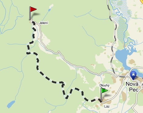 Zkrácená trasa vede z Nové Pece (Láz) na Jelení.